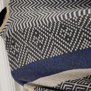Shawl from Francesca's. Colors are blue, grays, and cream. Never worn.