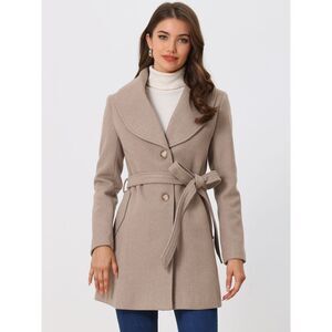 Shawl Collar Outwear Winter Belted Single Breasted Coat Light Khaki