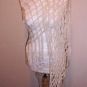 Shawl Crochet Handmade Ivory Fringed Fishnet Large