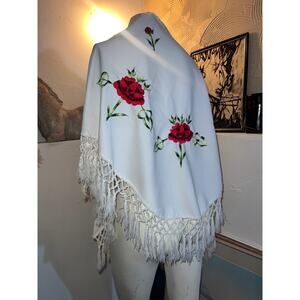 Shawl, Embroidered Rose l, Vintage 60s 70s Boho Hippie