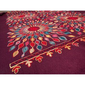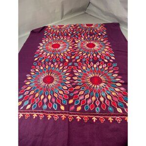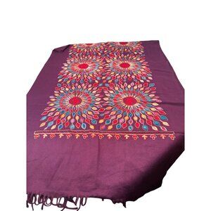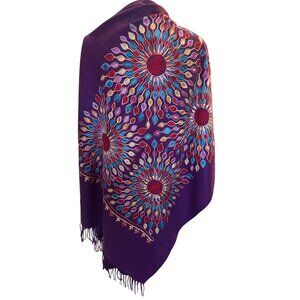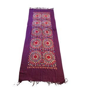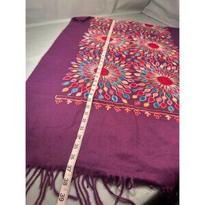Shawl Floral Embroidered Wrap Scarf Womens Fringe Soft Oversized Purple