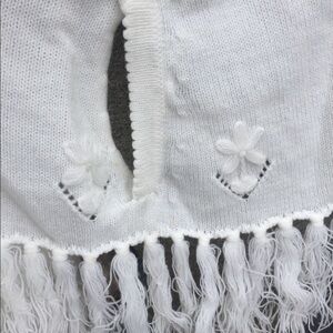 Cute vintage hand embroidered shawl with fringe with faux pockets, white. Tag doesn’t show a size