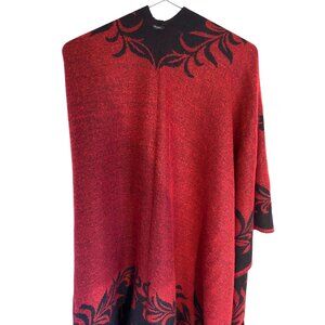 Shawl Reversible Red & Black Floral Patterned Wool Blend With Fringe Edges