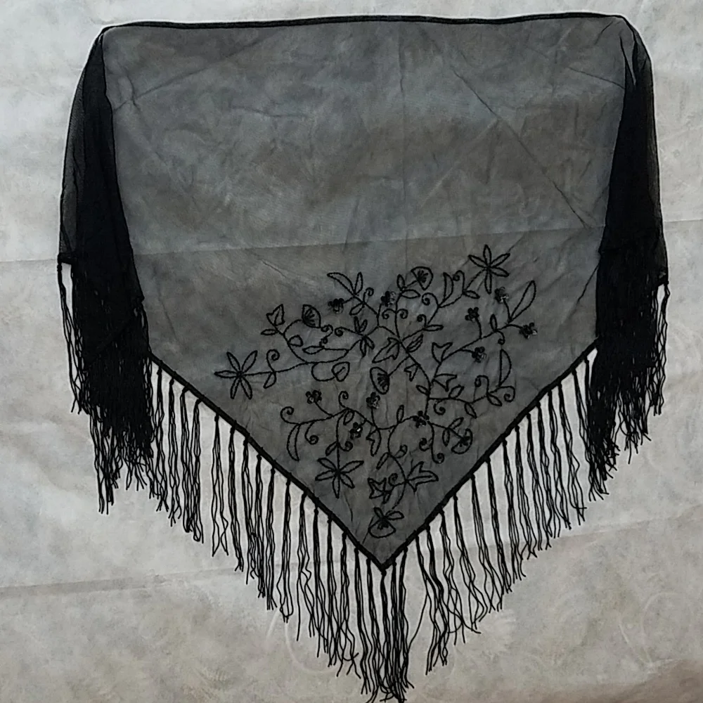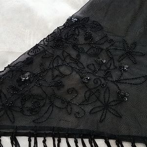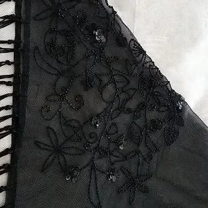 Beautiful shawl embellished with sequins, beads and embroidery. I have never used this and I dont remember if the seller I purchased it from had used it. Excellent condition and a great addition to that date night outfit, cocktail night or even a wedding. Dimensions in pictures.