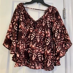 Pink and brown shawl top with beautiful feather pattern. In great condition, make an offer!