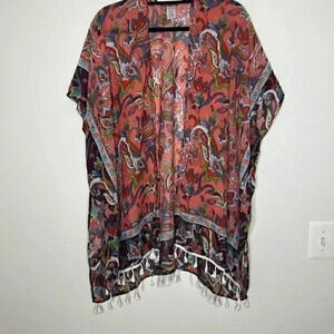 This new coverup is one size with tassels. Chic and beautiful.