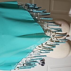 Shawl wrap, greenish blue, with lovely fringe with shells 🐚