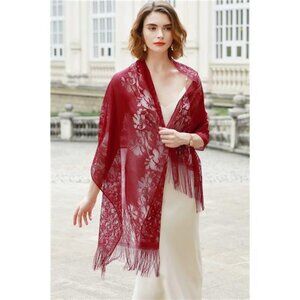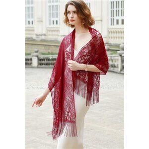 The evening shawl is made of 100% polyester.Weight:3.1ounces. Soft fabric,comfortable and breathe freely, brief design,flower mesh.Fashion fringe with the fabric. It is very lovely and lightweight.