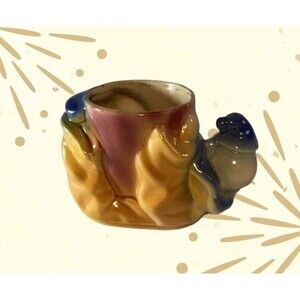 Add a touch of vintage charm to your home decor with this beautiful Shawnee Clown Planter. Standing tall at 3.25 inches and measuring 5 inches across, this art pottery piece is a unique addition to any collection. Crafted in the United States during the mid-20th century, this vintage original planter features a clown subject and is branded with the Shawnee name. The production technique of pottery and art deco style make it a one-of-a-kind item that is perfect for any lover of unique decor. Measures 3.25in Tall.