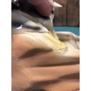 This is an extremely beautiful piece. There is a micro (small) chip on the lower sitting board and a small hairline crack at the end of the bird’s tail feather.