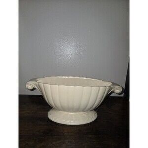 This beautiful planter from Shawnee Pottery is a must-have for any gardening enthusiast. Its oval shape and ribbed design make it a unique addition to any home decor. The cream color and laurel wreath design add a touch of elegance to the piece, making it perfect for displaying on a console table or in a pottery garden.