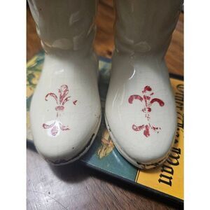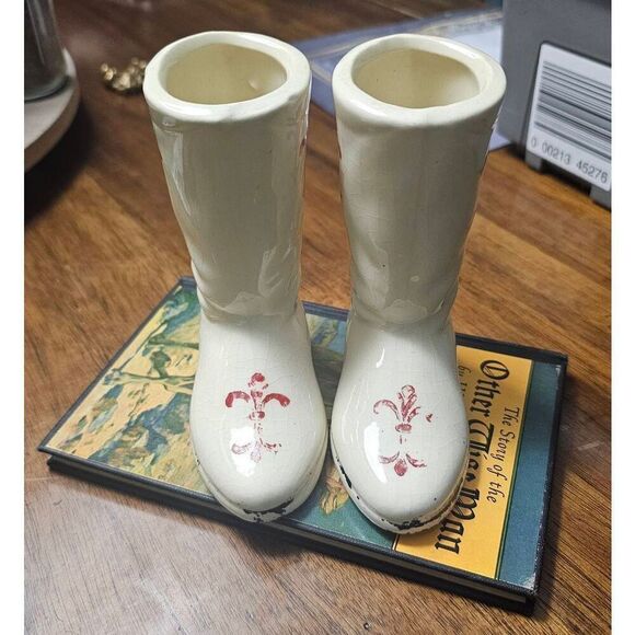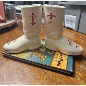 Shawnee Pottery Boot Planter Vase USA Cream Small Red Fleur Di Lis Crazing VINTA