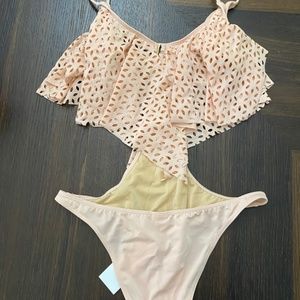 Shay Todd Eyelet Handkerchief Coral Peach Blush Monokini One piece Sz L