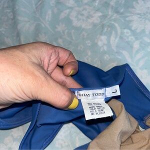 Shay Todd One Piece Open Back Swimsuit Blue Large