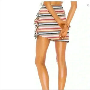 Shaycation x Revolve Elsie Rainbow Mini Skirt Women's Large Ruffles Festival NEW