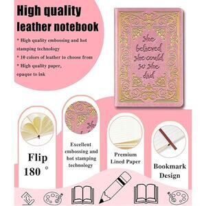 Inspirational Gifts for Women She Believed She Could So She Did Leather Notebook,Pink A5 Lined Leather Journal Notebook,200 Pages 100 Gsm Hardcover Executive Notebooks for Sister Friends Bestie (Pink)