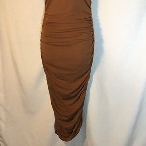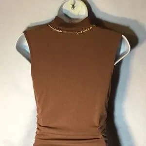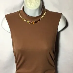 Beautiful Boss Lady Tan w/ Lots Of Memory Stretch w/ High Neck Perfect For Fall Jackets And Booties For Any Occasion In Perfect Condition .