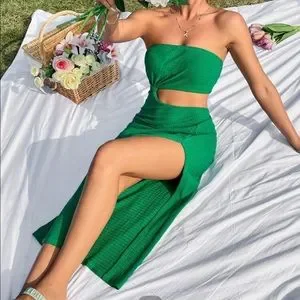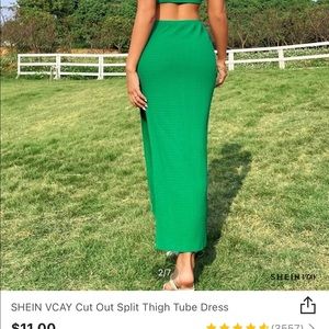White bathsuit size small (top is more for a B cup or C cup would be to large for a cup ) NWT never worn, green tube dress worn once like new and surprise She in NWT dress included as well! Vacation bundle SHE IN for size small.