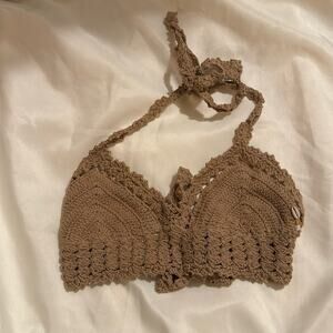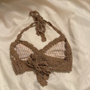 She Made Me Hira Crochet Tie Front Bikini Top Sand size Small/Medium