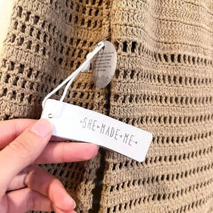 She Made Me Tan Brown Crochet Knit Beach Cover Up Adjustable Maxi Dress L NWT
