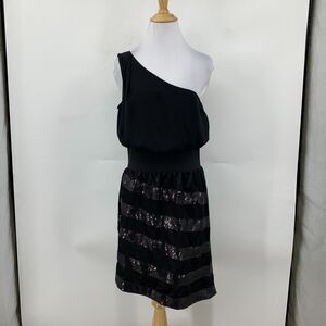 She Said... Sequin Cocktail Dress Womens S Small Black One Shoulder Banded Waist