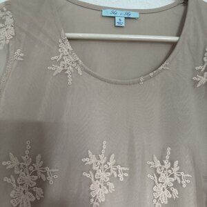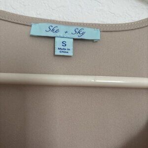 She + Sky Beige Lace Sheer Overlay Sleeveless Dress WhimsyBoho Fairycore Sz Sm