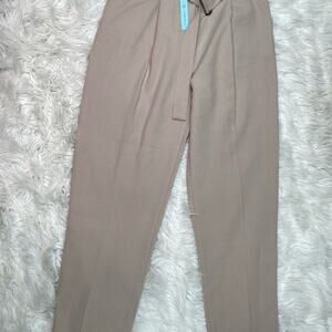 She & Sky Belted Slim Fit Paperbag Waist Trousers Size M Taupe NWT Wantable