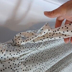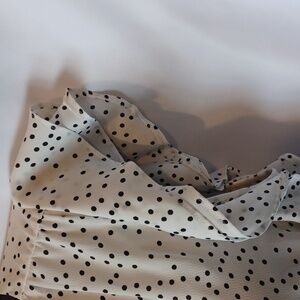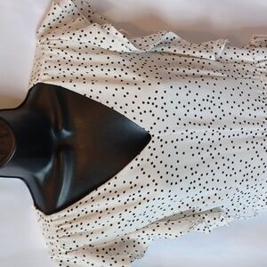 She + Sky Black & Cream polka dot Jumper, flutter sleeves, belted, open back