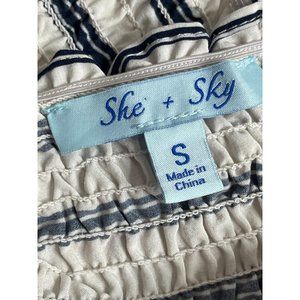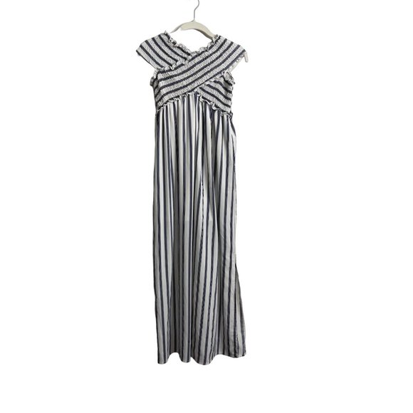She + Sky Black White Striped Smocked Sleeveless Empire Maxi Dress Size S