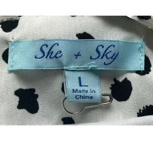 She + Sky Black and White Spotted Short Open Back Romper Women Size Large NWT