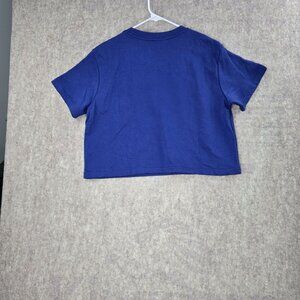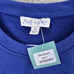 game day shirt, blue tee, She + Sky, football shirt, medium size, crew neck, casual top, graphic tee, cotton polyester, sportswear, trendy wear, short sleeve, casual fashion