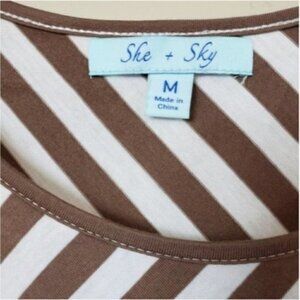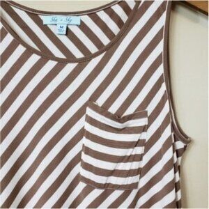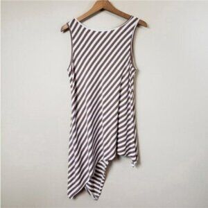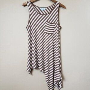 She & Sky | Brown White Striped Asymmetrical Hem Tank Top Size Medium