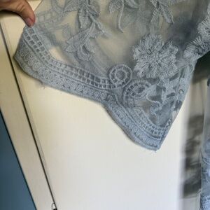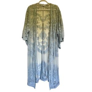 She + Sky Dusty Blue Floral Lace Kimono Size M/L