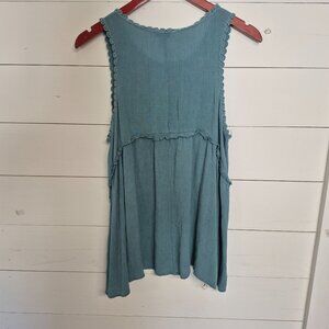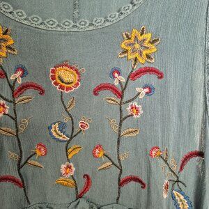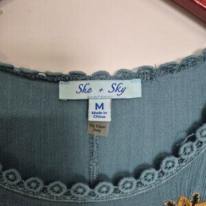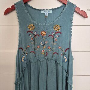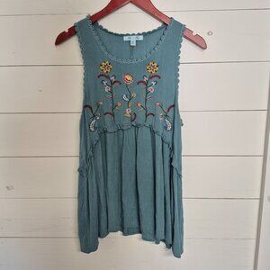 She + Sky Embroidered Boho Sleeveless Tunic Top Blue Floral Medium