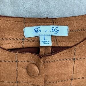 She + Sky Faux Suede Brown Plain Overall Skirt Adjustable Straps Size Large