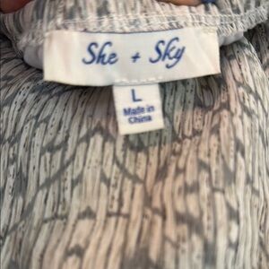 She + Sky Gray Boho Ruffled Collar Halter Jumpsuit Sz L Wide Leg Beachy Casual