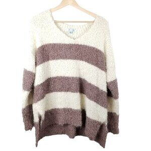 She + Sky M/L Popcorn knit Sweater Mauve Cream Striped Soft Cozy Boho