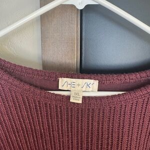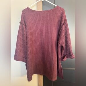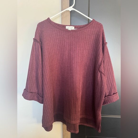 She + Sky Maroon Ribbed Sweater
