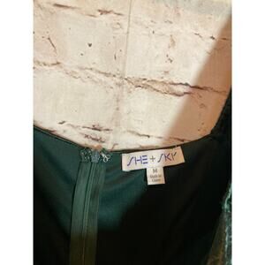 She + Sky Milkmaid Dress Womens Medium Forest Green Satin Dark Romantic Cutout