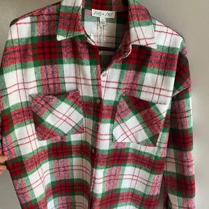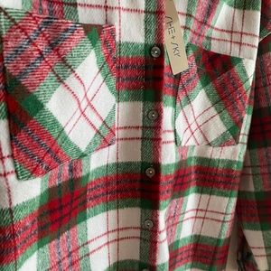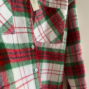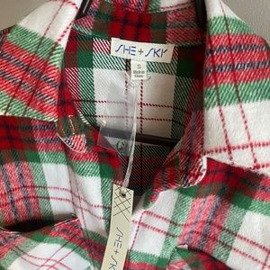 She + Sky Mistletoe Plaid Button Down Shacket, size S