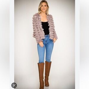 She + Sky Mocha Faux Fur Layered Hippie Shag Open Front Coat Size L (891)
