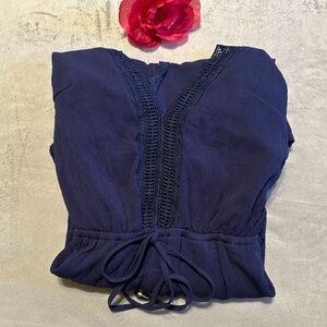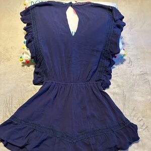 She + Sky NavyRuffled and Crochet Romper Size Small