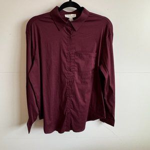 Brand new with tags, slightly oversized fit. Plenty of stretch. Single patch pocket. Plum in color. A popular Stitch Fix brand. This item is available in multiple sizes and this listing is for a size L.
