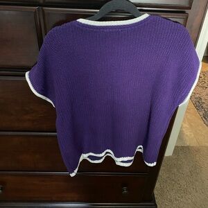 Chic purple knit top with white accents. Ideal for everyday style. Worn once Smoke free home