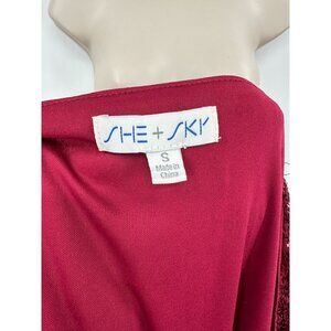She + Sky Ruby Red Sequin Romper With Long Sleeves & Tie Waist Size Small