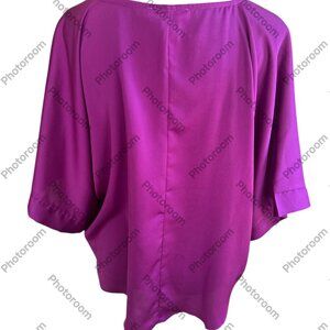 She + Sky Small Flowy Purple Dolman Short Sleeve Side Tie Satiny Blouse