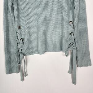 She + Sky Small S Teal Green Side Tie Lace Up Pullover Sweater Scoop Neck Cozy
