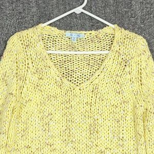 She + Sky Sweater Womens Small Yellow Long Sleeve V Neck Open Knit
