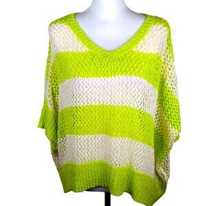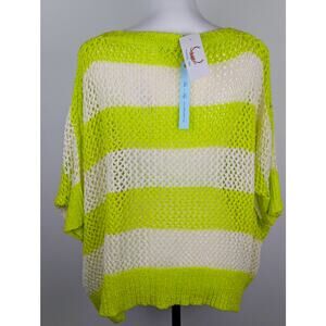 She & Sky Sz2 Oversized open weave sweater neon lime+white NWTbust 60"length 21"
