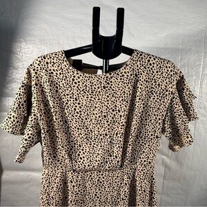 This She + Sky dress is a perfect blend of style and comfort, featuring a chic tan color and a flattering sheath silhouette. The dress is designed with a ruffled tie front and short flutter sleeves, offering a touch of elegance to its crew neck design. Ideal for casual or work occasions, this midi dress is a versatile addition to any wardrobe.